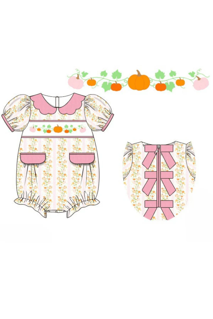 -70%Smocked Floral Pumpkin Pink Bow Bubble—